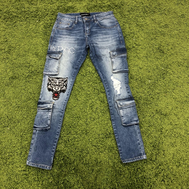 Custom Y2k Designer Biker Vintage Dirty Washed Straight Leg Baggy Jeans Hombres