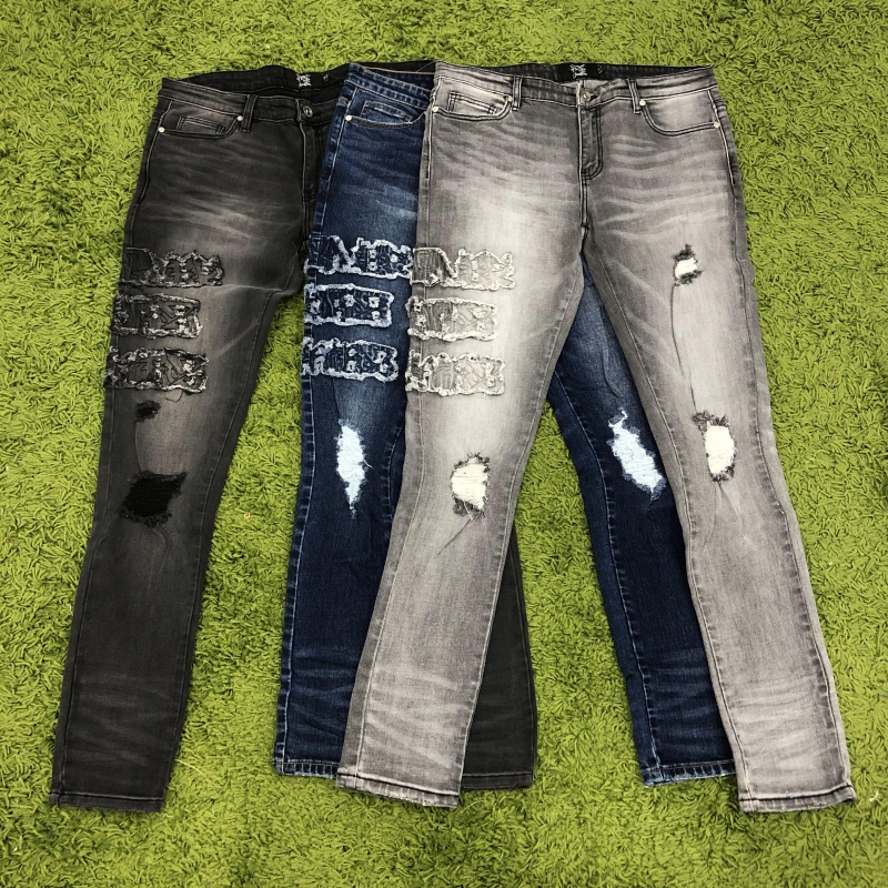 EDGE DENIM Fabricante Hombres Parche de pierna ancha Bordado Desgastado Oversize Denim Baggy Jeans Hombres